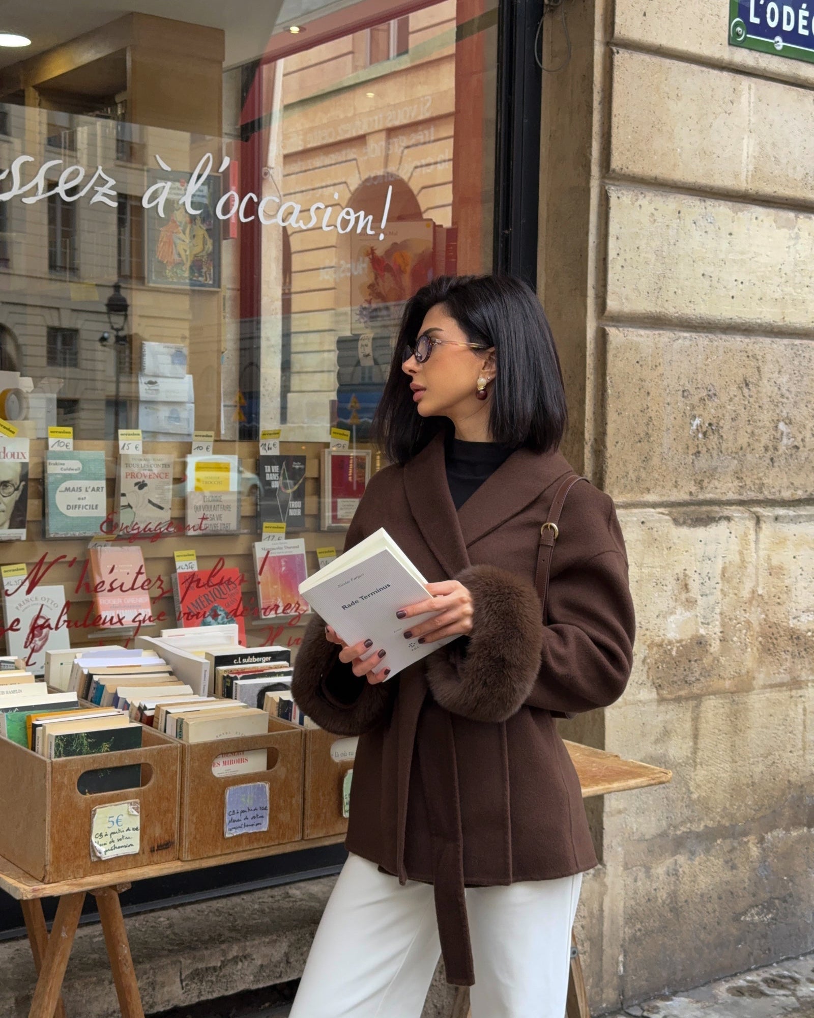 Elevate your style with our high quality Victoria Moss Wool Coat, a timeless and feminine wardrobe essential made for you walk in and instantly become the most beautiful in the room. it enhances your figure while keeping you cozy and effortlessly chic. Finished with plush synthetic faux-fur cuffs for that rich, healthy, main character energy. Perfect for elevated daywear or elegant evening looks.